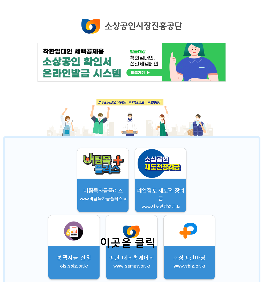 우선 아래의 링크를 통해 소상공인시장진흥공단 사이트로 접속합니다.