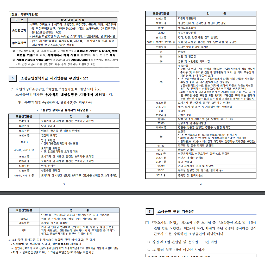 아래와 같은 업종은 지원이 제외되니 잘 확인하시기를 바랍니다.