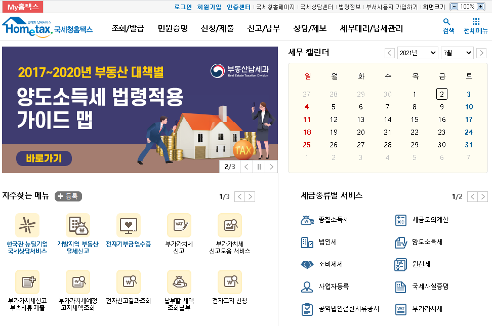 참고로 국세청 홈택스 사이트를 이용하기 위해서는 공동/공인 인증서가 있어야 하기때문에,