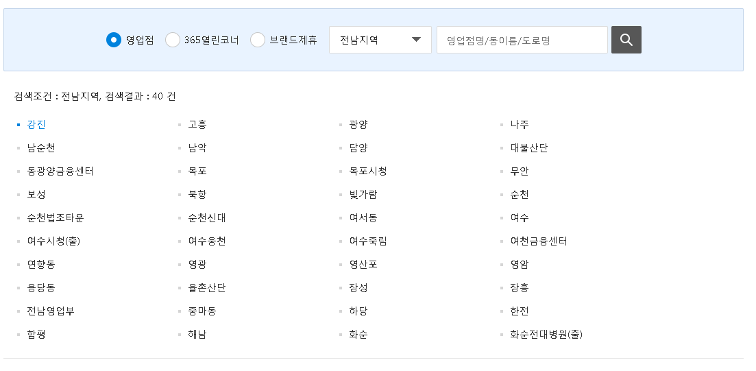 광주은행 의 365열린코너 같은경우 광주, 전남 지역에만 지점이 존재하며 서울 경기권을 포함한 기타지역에는 없다는 점을 유의하시기 바랍니다.