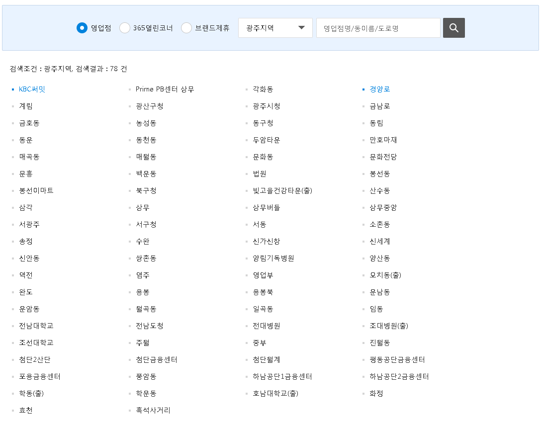 1. 광주은행 영업지점